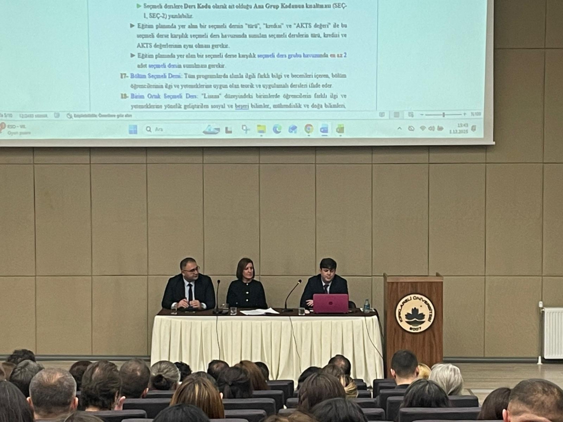 Üniversitemizde yürütülen kalite güvencesi çalışmaları kapsamında, eğitim içeriklerinin beş yılda bir eğitim izleme–değerlendirme sonuçları ile iç ve dış paydaş geri bildirimleri doğrultusunda güncellenmesi ve eğitim süreçlerini iyileştirme çalışmaları önem arz etmektedir. 2021-2022 akademik yılında güncellenmiş olan eğitim planlarının 2025-2026 akademik yılında yeniden güncellenmesi ihtiyacı sebebiyle Eğitim Öğretim Geliştirme Koordinatörlüğü, Bologna Eşgüdüm Koordinatörlüğü ve Öğrenci İşleri Daire Başkanlığı koordinasyonunda tüm akademik birim öğrenci işleri sorumlularının, Bologna temsilcilerinin, bölüm başkanlarının dekan ve dekan yardımcılarının katıldığı Eğitim Planları ve Program Yeterlilikleri Güncelleme Bilgilendirme Toplantısı düzenlendi. 01 Aralık 2025 tarihinde saat 15.00 da 3. Merkezi Derslik Prof. Dr. Mustafa AYKAÇ Konferans Salonu’nda yapılan toplantıda süreçlere ilişkin işleyiş, takvim, görev ve sorumluluklar ele alınmış; birimlerin güncelleme çalışmalarına hazırlıklı ve koordineli biçimde başlamasına yönelik açıklamalar yapılmıştır. Toplantıda kurumsal iyileştirme süreçleri kapsamında program eğitim planları ve program yeterliliklerini hazırlama ve güncelleme sürecini Bologna Koordinatörü Öğr. Gör. Berna Türkyılmaz 4 aşamalı olarak açıkladı. Üniversitemizde eğitim-öğretim süreçlerinin, katılımcı, kapsayıcı ve sürdürülebilir bir kurumsal yapıya dayalı yürütülmesi için Eğitim Bilgi Paketinde eğitim içeriklerinin geliştirilmesi ve güncellenmesine ilişkin kullanılabilecek formlar ve içerikleri tek tek açıklandı ve Kurumsal Eğitim Bilgi Paketinde çevrimiçi ortamda erişilebilir adresleri gösterildi. Kurumsal Eğitim Bilgi Paketi Formlar: https://ebp.klu.edu.tr/Sayfalar/Formlar Ders Bilgi Formunun içeriği ve bölümler arasında nasıl bağlantı olduğu ve nasıl düzenlenmesi gerektiği açıklandı ve en sık yapılan hatalar vurgulandı. Ders öğrenme çıktılarının özellikle öğrencide geliştirilecek nitelikleri ifade eden çıktıların "Kurum Ders Öğrenme Çıktıları Hazırlama Kılavuzu"na ugun hazırlanması gerektiği açıklandı. Öğrenci İşleri Daire Başkanlığı Şube Müdürü Utku Kıyar eğitim planı öneri formunun nasıl doldurulması gerektiğini ve değişiklik tekliflerinin nasıl yapıldığını açıklayan sunumunda, eğitim planı öneri formunda geçen tanımları, formu dolduruken dikkat edilecek hususları detaylı olarak açıkladı. Eğitim Planı Hazırlama Kılavuzunun esas alınmasının önemini ve değişiklik işleyiş sürecinin aşamalarından bahsetti. Seçmeli dersler, zorunlu dersler veya eğitim planınından kaldırılacak derslere verilecek isimlendirme, kısaltmalar veya kodlamaları açıkladı. Ön lisans, lisans, bilimsel hazırlık, tezsiz yüksek lisans, tezli yüksek lisans, doktora programlarının eğitim sistemlerini, eğitim planlarının kritik formatlarını ve tüm programlara ait derslerin kodlandırma yöntemini detaylı olarak açıkladı. Üniversitemizin kapsayıcı ve sürdürülebilir nitelikli eğitimi geliştirmenin aracı olarak eğitim planları, program amaçları ve yeterliklerine ilişkin Eğitim Öğretimi Geliştirme Koordinatörü Dr. Öğr. Üyesi Alaettin İşeri, Üniversitemizde tanımlı kurumsal süreçler doğrultusunda 2025-2026 akademik yılına yönelik eğitim planlarının güncellenmesinde kapsayıcı eğitim planlarının nitelikleri, disiplinlerarasılık ve seçmeli derslerin etkililiğini durumunu açıkladı. Özellikle Üniversite bünyesinde OSD havuzu gibi tüm birimler bünyesinde birim içi bölümlerden ders alabilme imkanının genişleten BOSD havuzlarının geliştirilmesi gerektiğini belirtti. Ayrıca tüm bölümlerde "Seçmeli Ders Havuzları"nın işlevselliğine dikkat çekerek sistem üzerinde 20-30 adet seçmeli dersin göründüğü bir dönemde bu derslerin son yıllardaki açılma verileri dikkate alınarak hiç açılmayan veya öğrenci tarafından tercih edilmeyen derslerin sistemde kalmasının hem bölüme hem de öğretim elemanına gereksiz bir iş yükü oluşturduğunu ifade etti. Bu kapsamda, işlevini yitirmiş derslerin ayıklanması, ders içeriklerinin güncellenmesi gerektiğini belirtti. Toplantının en önemli gündem maddelerinden biri olan Üniversitemizde eğitim izlemede ve değerlendirme çalışmalarının temelini oluşturan "Program Yeterlilikleri ve Program Amaçları" oluşturdu. Günümüz yükseköğretiminde sadece bilgi aktarımının önemini yitirdiği, öğretilen bilginin beceri ve yetkinliğe dönüşmesi gerektiğini vurgulayan Eğitim Öğretimi Geliştirme Koordinatörü Dr. Öğr. Üyesi Alaettin İşeri, program yeterlilik ve amaçlarının kapsayıcı olması gerektiğini bu kapysayıcılığın Türkiye Yükseköğretim Yeterlilikler Çerçevesi (TYYÇ), ilgili akreditasyon kuruluşlarının öngördükleri yeterlilikler, paydaş geri bildirimleri, bölüm eğitim izleme-değerlendirme verilerine ilişkin referanslarının olması gerektiğini belirtti. Üniversite öğrencilerinin sadece "bilen ve bildiğini açıklayan" değil, "analiz eden, tasarlayan, eleştiren, sorgulayan ve yeniden üreten" bireyler olarak yetiştirilmesi gerektiğini ifade etti. Bu doğrultuda, Kurumsal düzeyde program çıktılarının sadece ders öğrenme çıktılarıyla eşleştirilmesinin deği, program amaçları ve yeterlilikleri, mezun yeterliklerinin ölçülebilir performans kriterleri üzerinden izlenmesi ve değerlendirilmesi çalışmalarının yürütüleceğini ve bu dorğultuda iyileştirmelerin her yıl BED raporları üzerinden izleneceğini belirtti. Eğitim planlarının güncellenmesi sürecinin veri temelli ve katılımcı bir anlayışla yürütüleceği belirtildi. 2018 yılından bu yana yürütülen Kurumsal Öğrenci Me